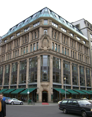 緑の揺れる広場の角に、FASSBENDER & RAUSCHという、1863年創業の老舗チョコレート店があります。