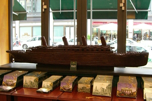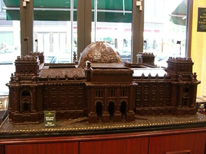 ウィンドウに飾られているのは、全部チョコレートで拵えたブランデンブルグ門や、国会議事堂、タイタニック号などの巨大なオブジェ。