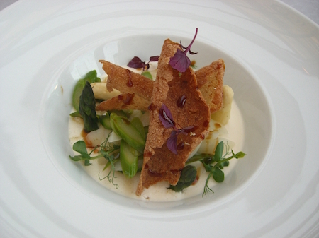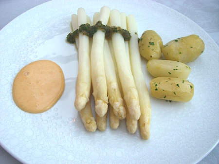 その上に、緑と白のアスパラが美しくデコレーションされていました。