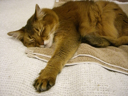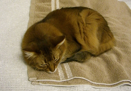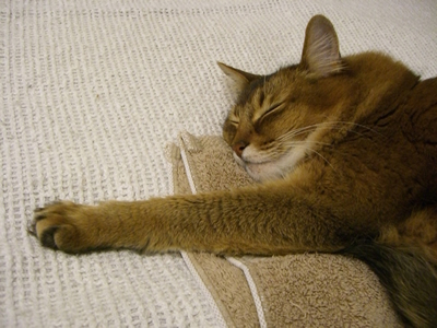 しょっちゅうタオルの上で、体を伸ばせるだけ伸ばして、くつろいでいます。