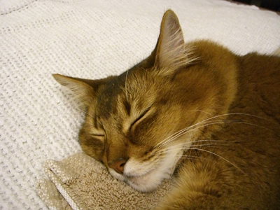 白いワッフルタオルは、マフィンがうちに来たときから使っているもので、もう10年が過ぎ、ボロボロになっているのですが、マフィンがあまりに気に入っているものですから、なかなか捨てられません。