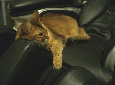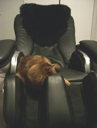 私がマッサージ機にかかっているのを見て、よほど気持ち良さそうだと思ったのでしょう、時々こっそりマシーンを独占していて、私はにんまり。
