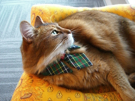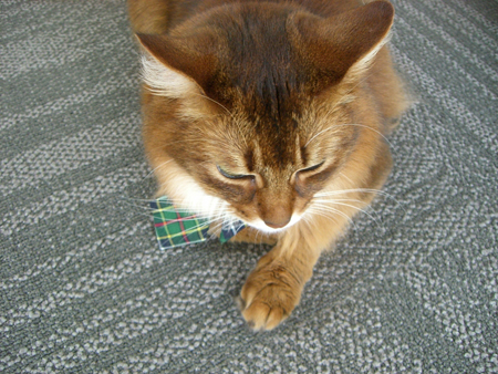 マフィンに、男の子らしいグリーンのチェックのネクタイも、買ってあげました。