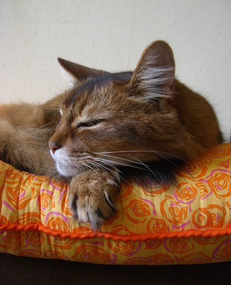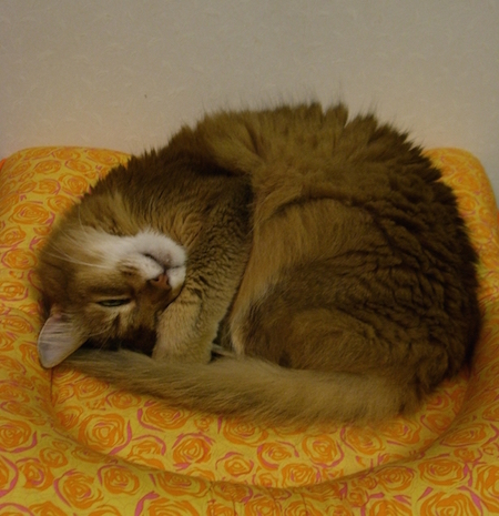 お気に入りの場所に置いてあげたら、マフィンは大喜びで、そこから離れようとしません。