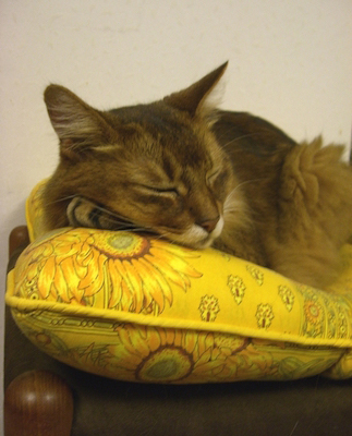 黄色いひまわり畑に埋もれて眠るネコ(マフィン)の姿は、うだるような暑さのなかでも、涼やかな風を運んでくれるのですよ。