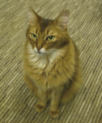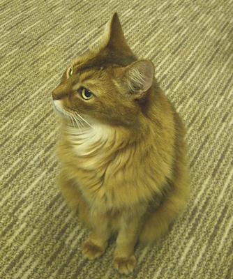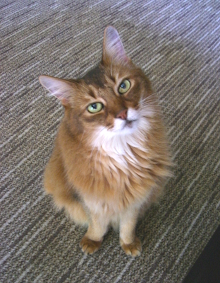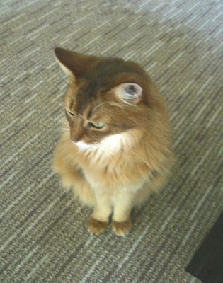 でも、私があまりにも忙しそうに仕事をしていたりすると、彼なりにちょっと遠慮するのでしょうか、すぐそばにお行儀よく座りこんで、気付いてもらうのを待っていたりするんです。