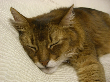 それに満足すると、今度は枕のすぐわきにコロンと横になり、「なでなでして〜」と甘えるのです。
