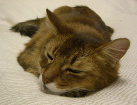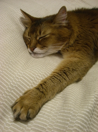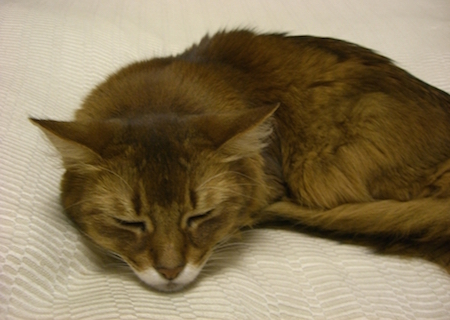 「おやすみ〜」と、私はひとしきり、マフィンの顔やのどをなでなで。
