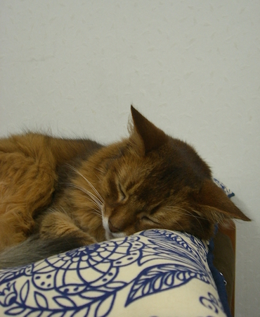 おしゃれな大人のねむねむで、夏の暑さも忘れて、マフィンは今日もくつろいでいますよ。