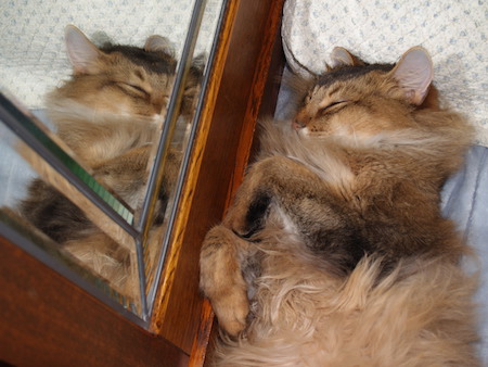 このサイトで呼びかけたり、動物病院や動物プロダクション、ペットショップなどでリサーチを試みましたが、マフィンより年上、つまり16歳以上のソマリちゃんは、なかなか見つかりませんでした。