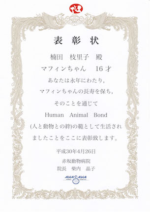 今年もめでたく、16歳の表彰状をいただきましたよ!