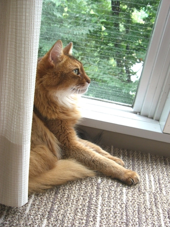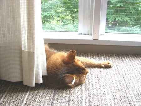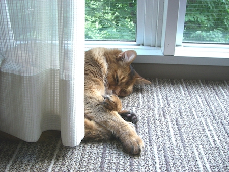 と優しく声をかけ、手を伸ばして、あごをなでてあげると、ようやく納得したようで、今度は枕のすぐ横に身を投げ出し、