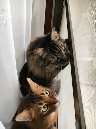 マフィンと同じソマリのナスカちゃん(12歳)と、保護猫だったアルクくん(3歳)と、暮らしています。