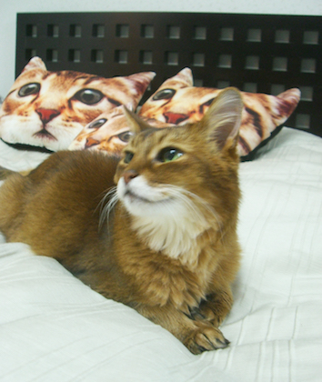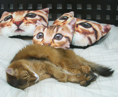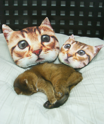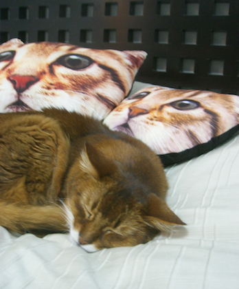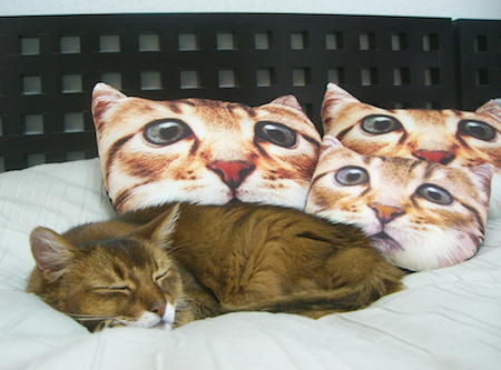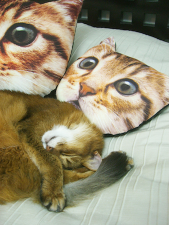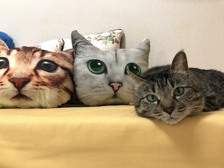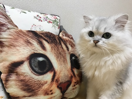 2月のこのページで紹介した、猫クッションをたいそう気に入り、すぐに入手したと、写真を送ってくれたのです。