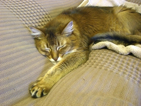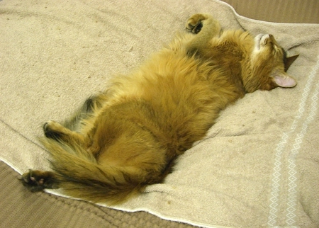 夜私がベッドに入るとすぐさま後を追ってきて、枕の真横にゴロンと寝転び、マッサージをねだります。