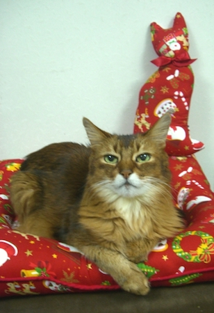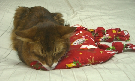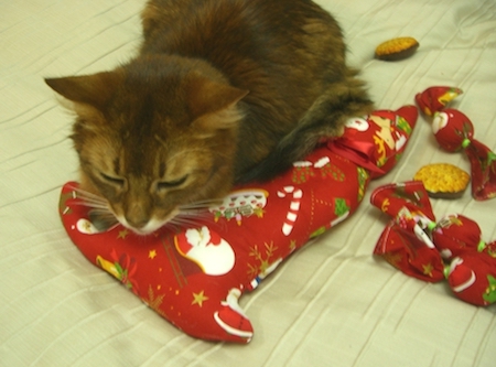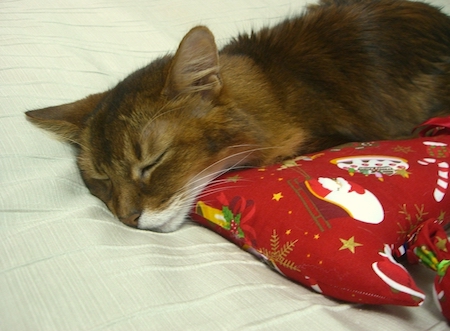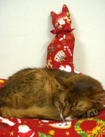 1年間大事に仕舞ってあったクリスマスねむねむを取り出して、お気に入りの場所にセッティングしてあげると、マフィンは大喜び。