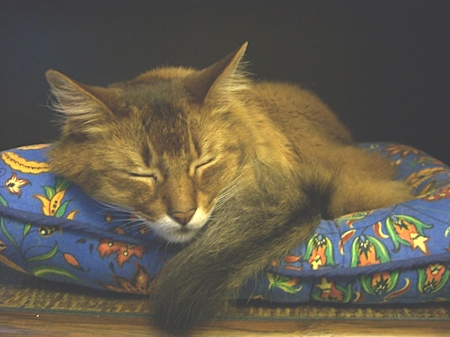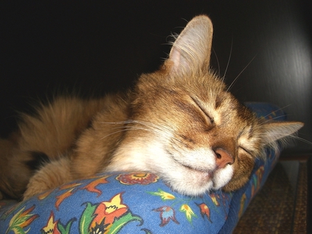 時間になると、私はやむなく、フードボウルに気に入りのウェットフードを入れ、マフィンが眠っているベッドまで運んでいくの。