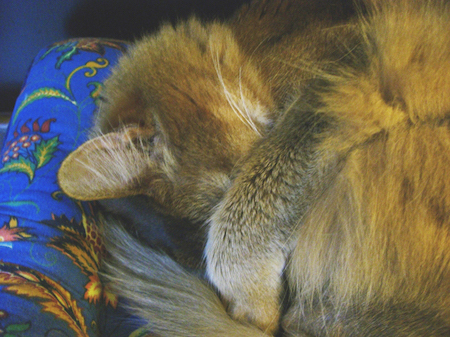 ぷ〜んと、美味しそうな匂いに誘われて、食いしん坊のマフィンは目を覚まし、むしゃむしゃと食べ始めます。