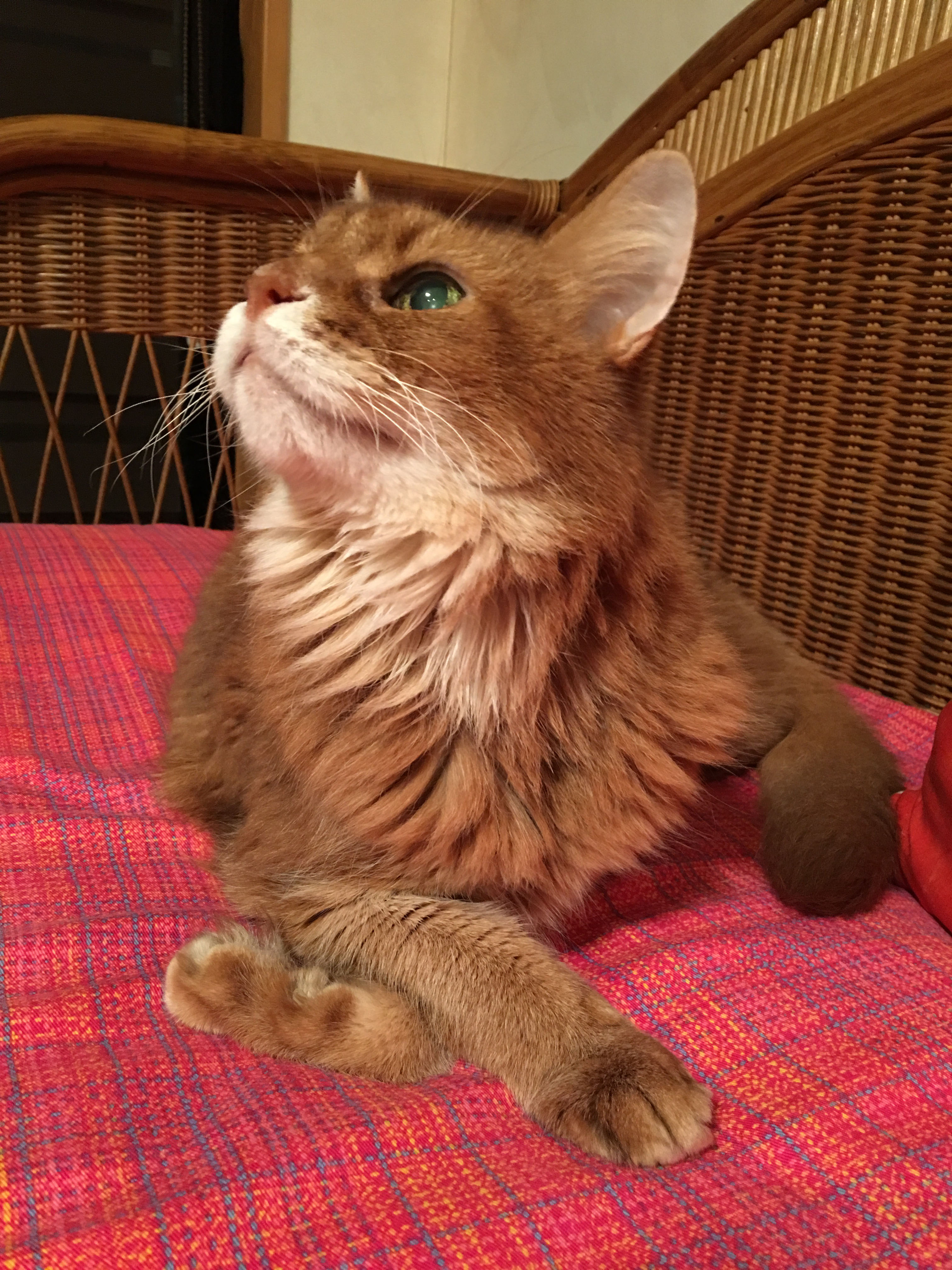 目が見えていたころと、同じ場所に、フードボウルがあり、お水があり、トイレがあり、居心地のいいソファがあり・・・あらし君が不自由なく生活できるようにと、心を砕いたのですね。