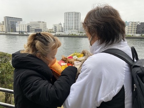 火葬の前には、ふたりはあらし君を連れて、以前よく散歩に出かけた川辺に向かいました。