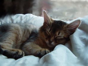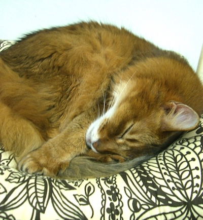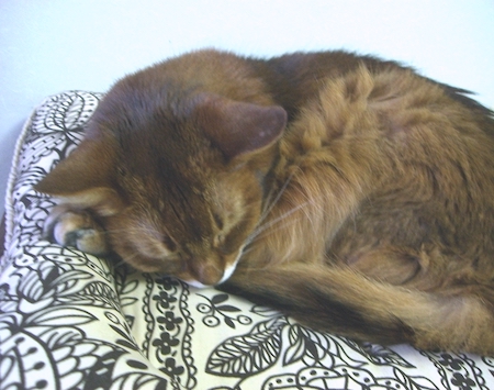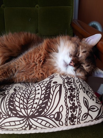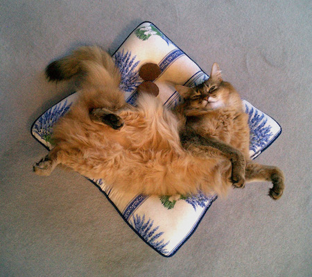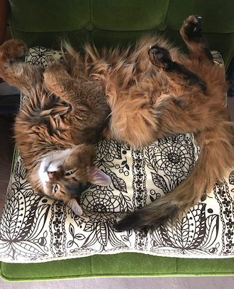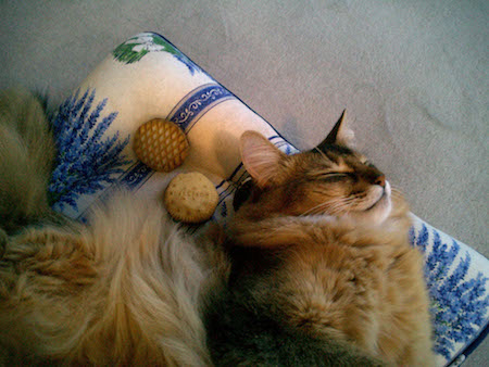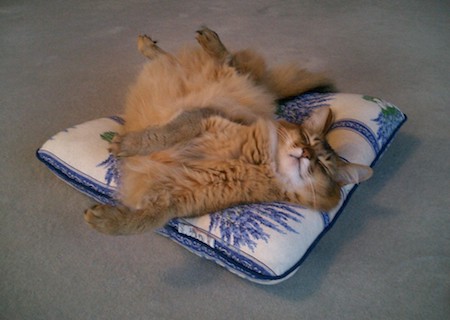 マフィンも、ねむねむの上で、同じように、あられもない格好をしていたものです。