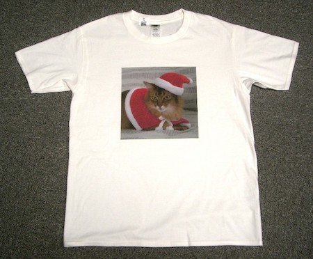 マフィンと私の古くからのお友だち、みゆきちゃんとマノちゃんが、サンタ・マフィンをプリントした、すてきなTシャツを作って、プレゼントしてくれたのです!