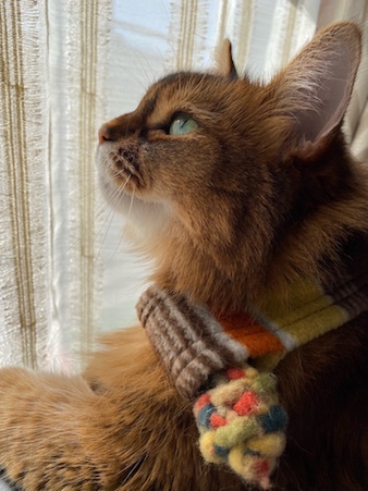 マリイちゃんに、マフィンの大好きだったマフラーを2本、形見分けさせていただきました。