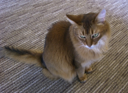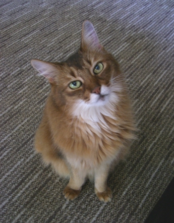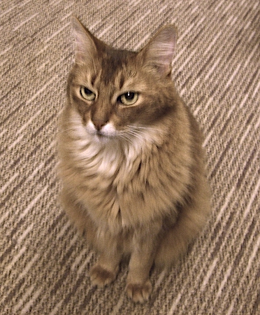しばらく気付かないでいると、しびれを切らし、後ろ足立ちして、前足で私の膝をトントンと叩き、