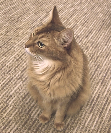 私がデスクで仕事をしていると、いつのまにかマフィンは足元に来て、行儀よく座り、物言いたげに私を見つめていたものです。