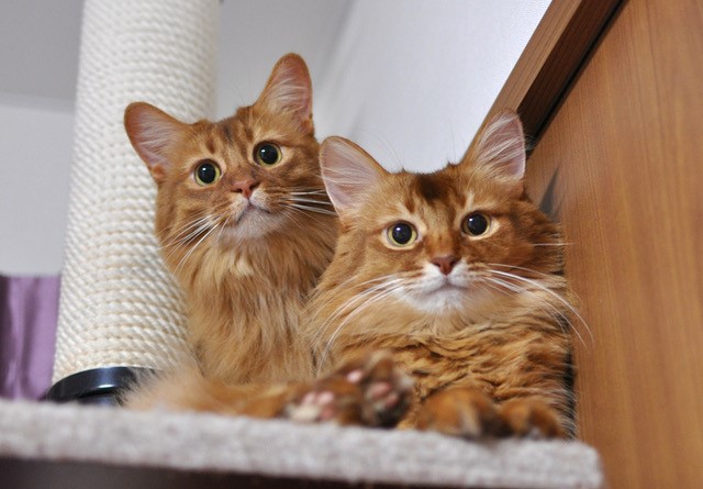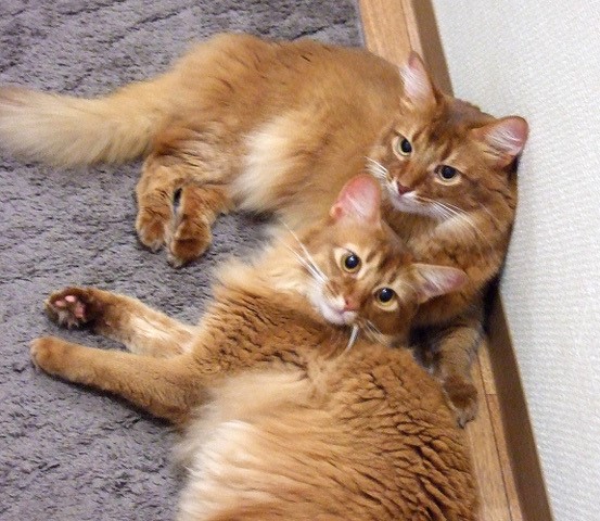ラピス君も同じソマリのレッドで、血縁はないのに、ふたりは、そっくり。