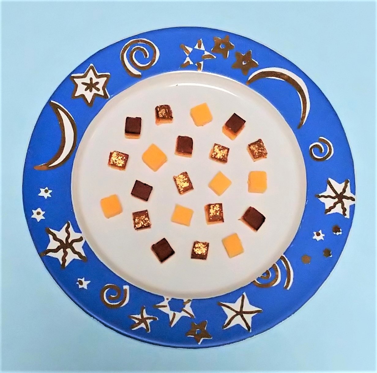 あのコが一口で食べられるように、小さく小さくカットし、月や星が輝くお皿で、華やかにね。
