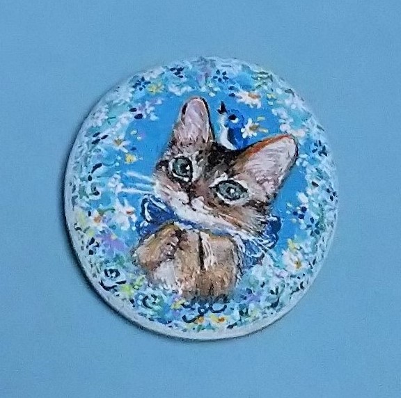 もうひとつ、古いお友だちのヨシコさんから、マフィンを描いた石のペーパーウェイトを、贈っていただきました。