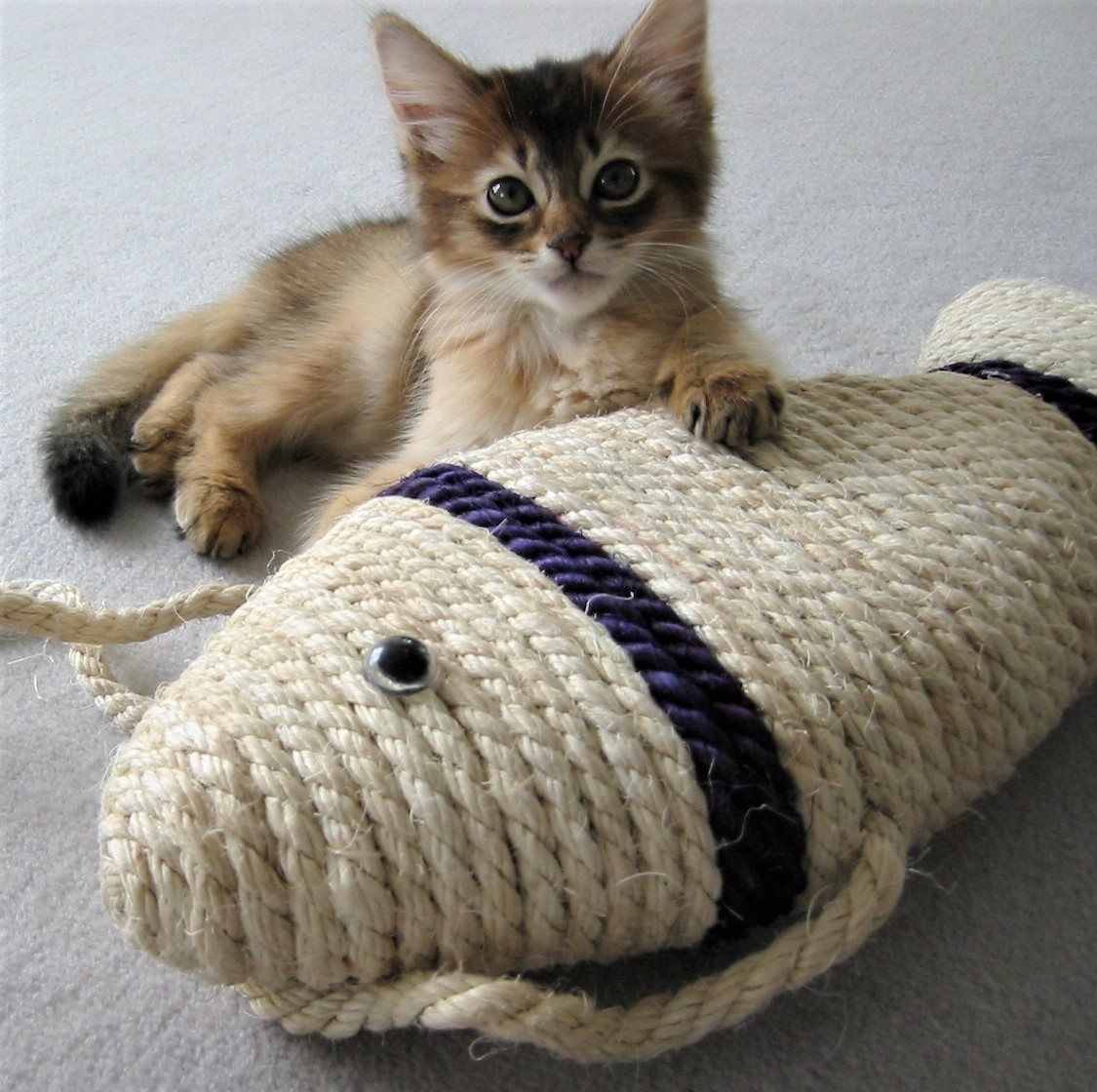 足元のお魚は、マフィンがうちにやってきたときから、ずうっと一番の仲よしだった、爪とぎ!!