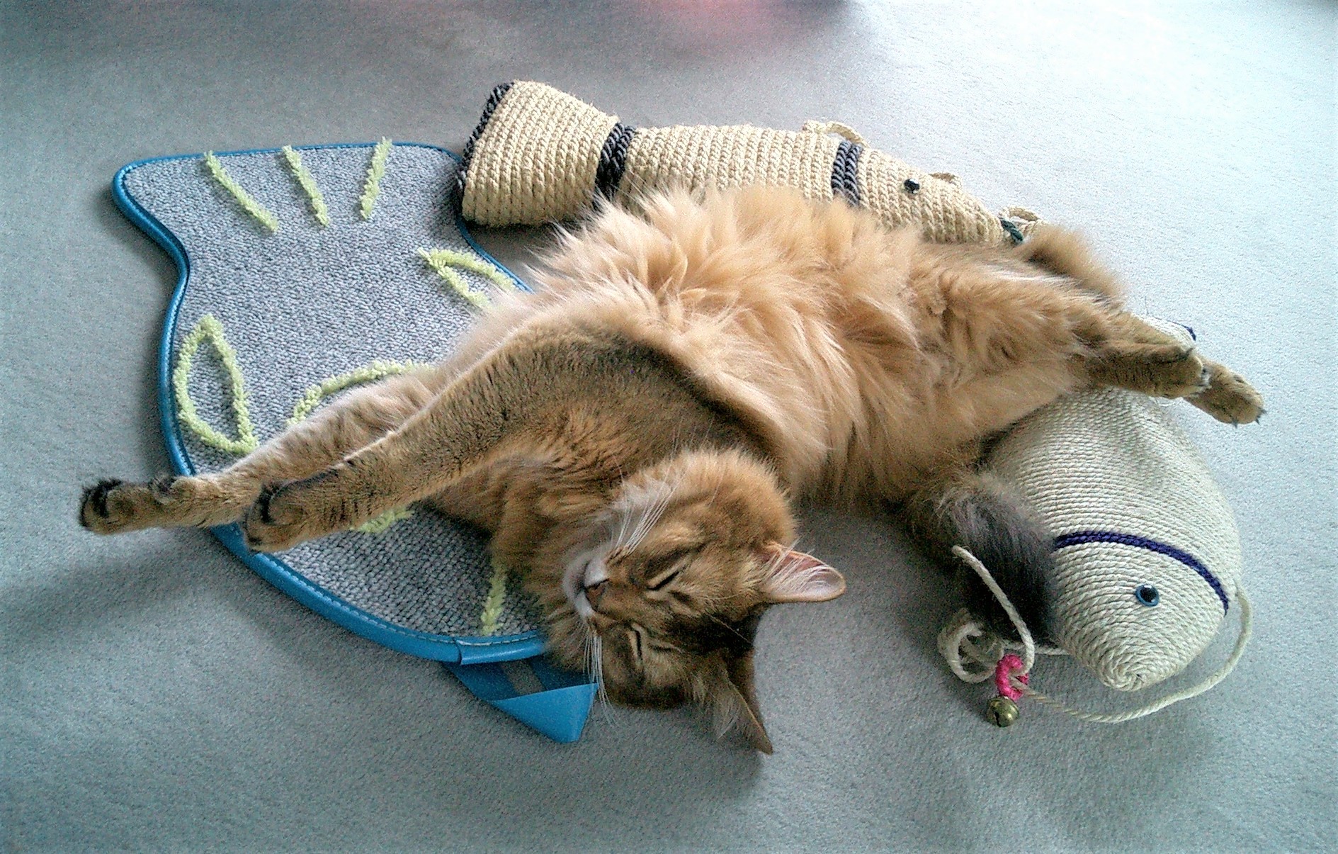 ブルーグレイのマットのお魚さんも集まって、みんなでお昼寝するの、最高に気持ちよかったね、マーちゃん!!