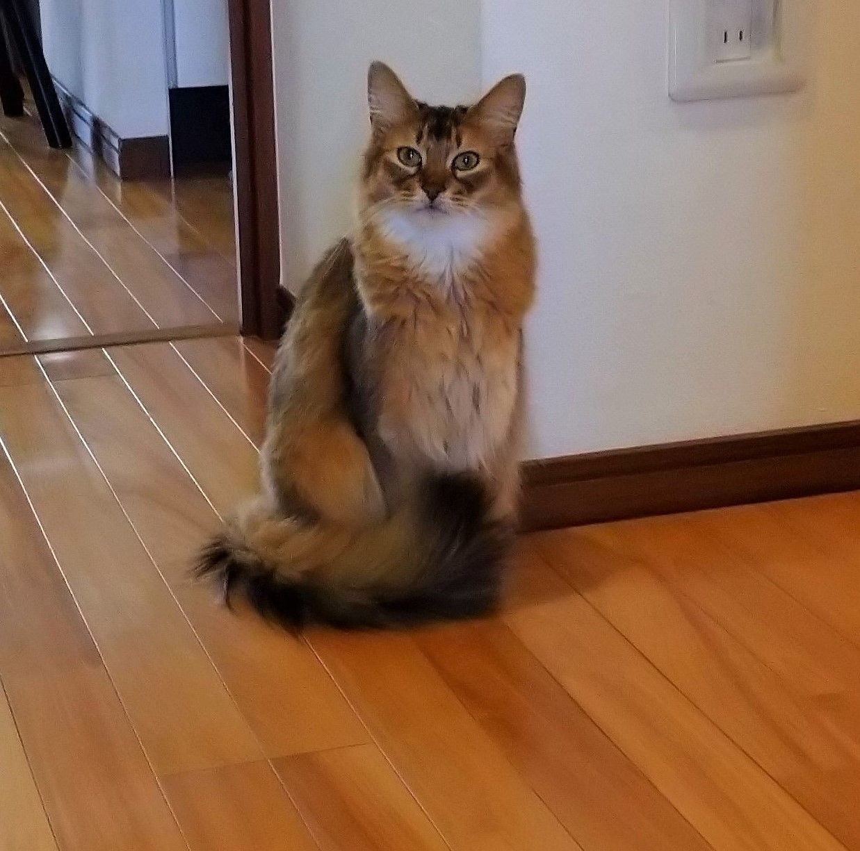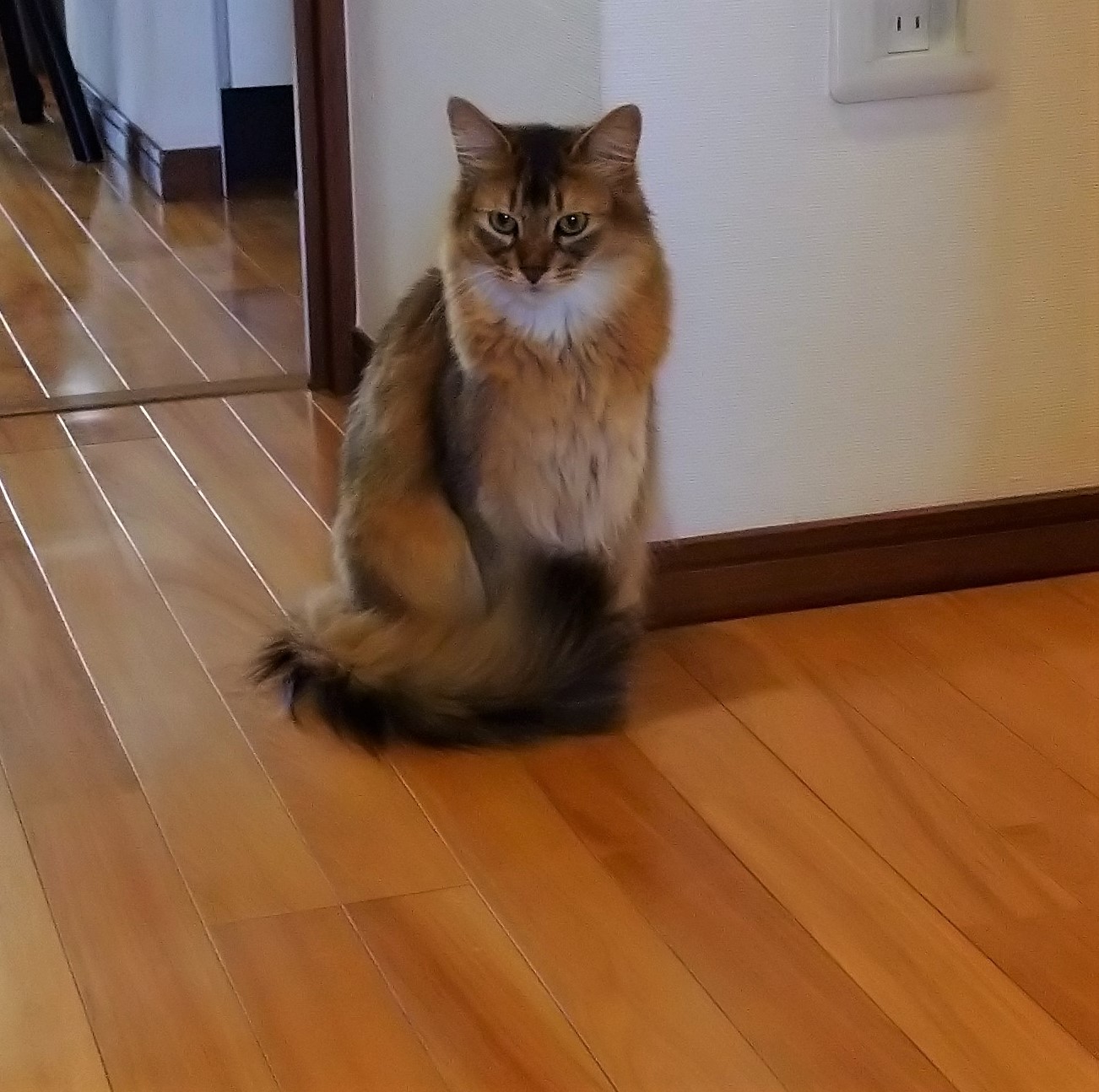 玄関の扉を開けると、とびちゃんは行儀よく座って、迎えてくれました。