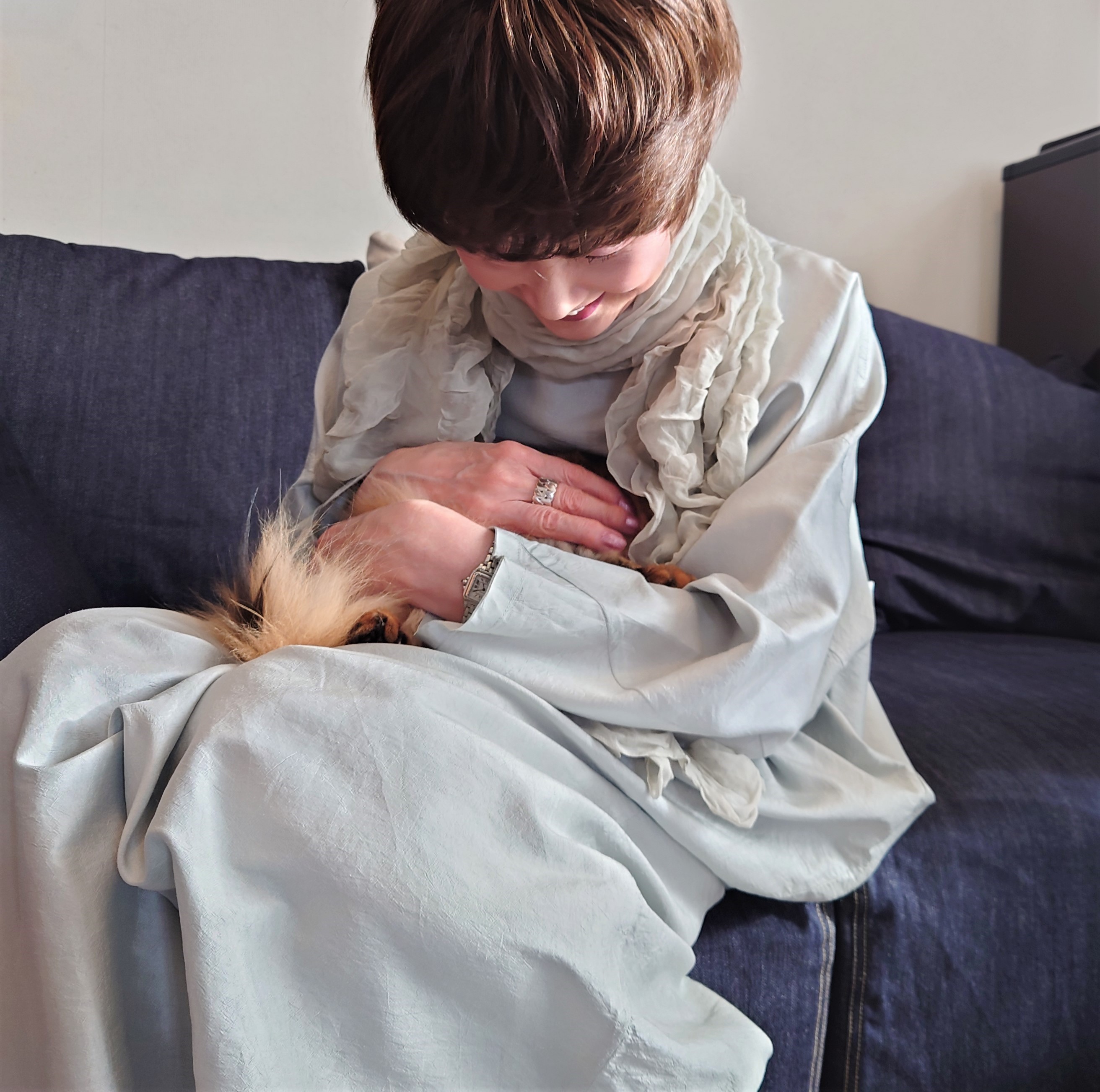抱っこしているうち、あらら、とびちゃんが、私の左の二の腕に頭を突っ込み、潜り込んでしまったではありませんか。