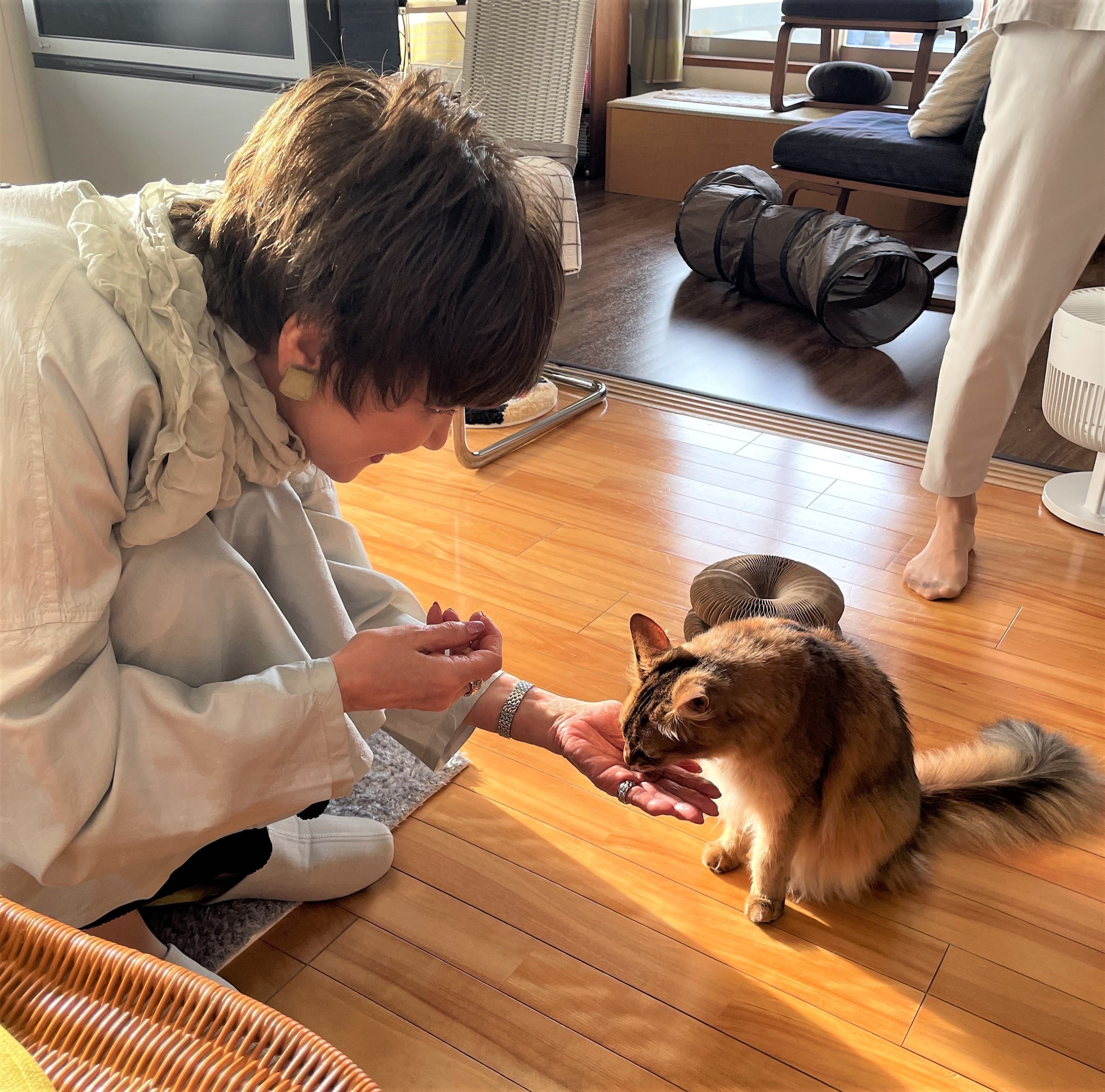 もうすっかり仲よしで、私の手から、おやつも食べてくれました。