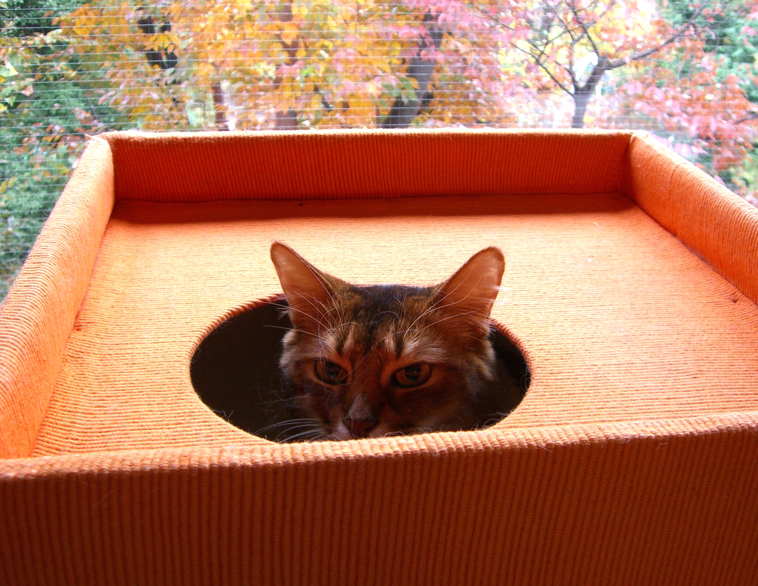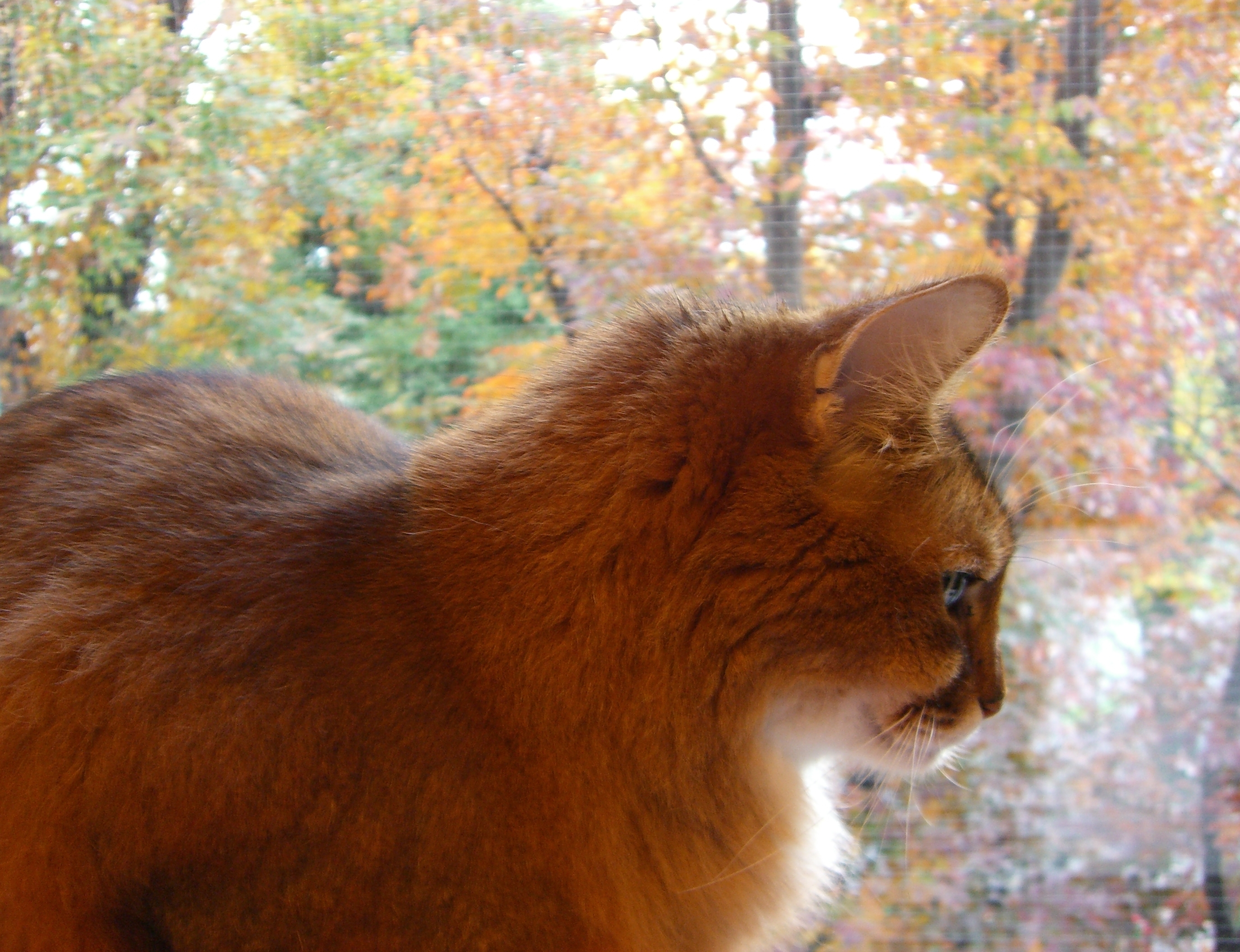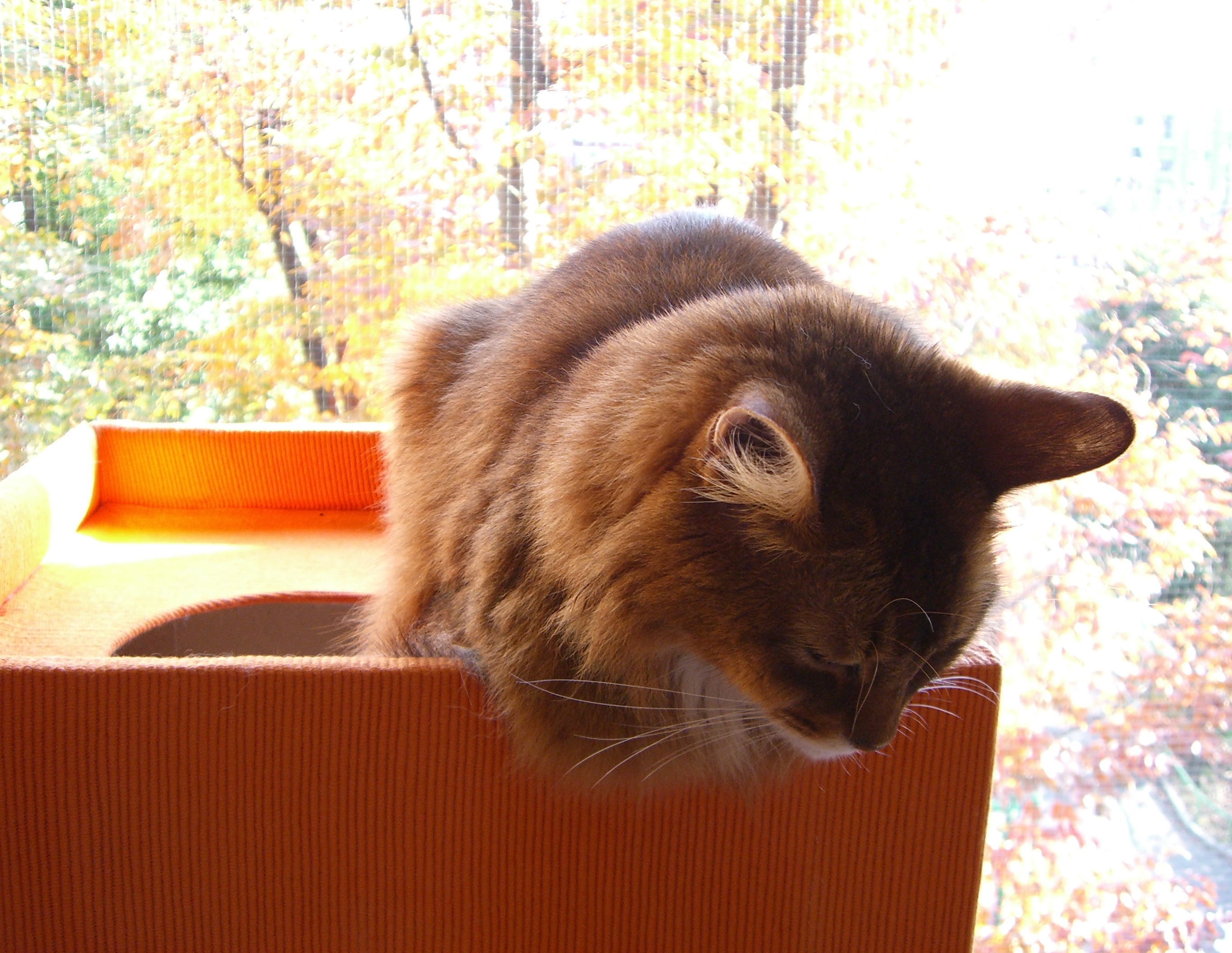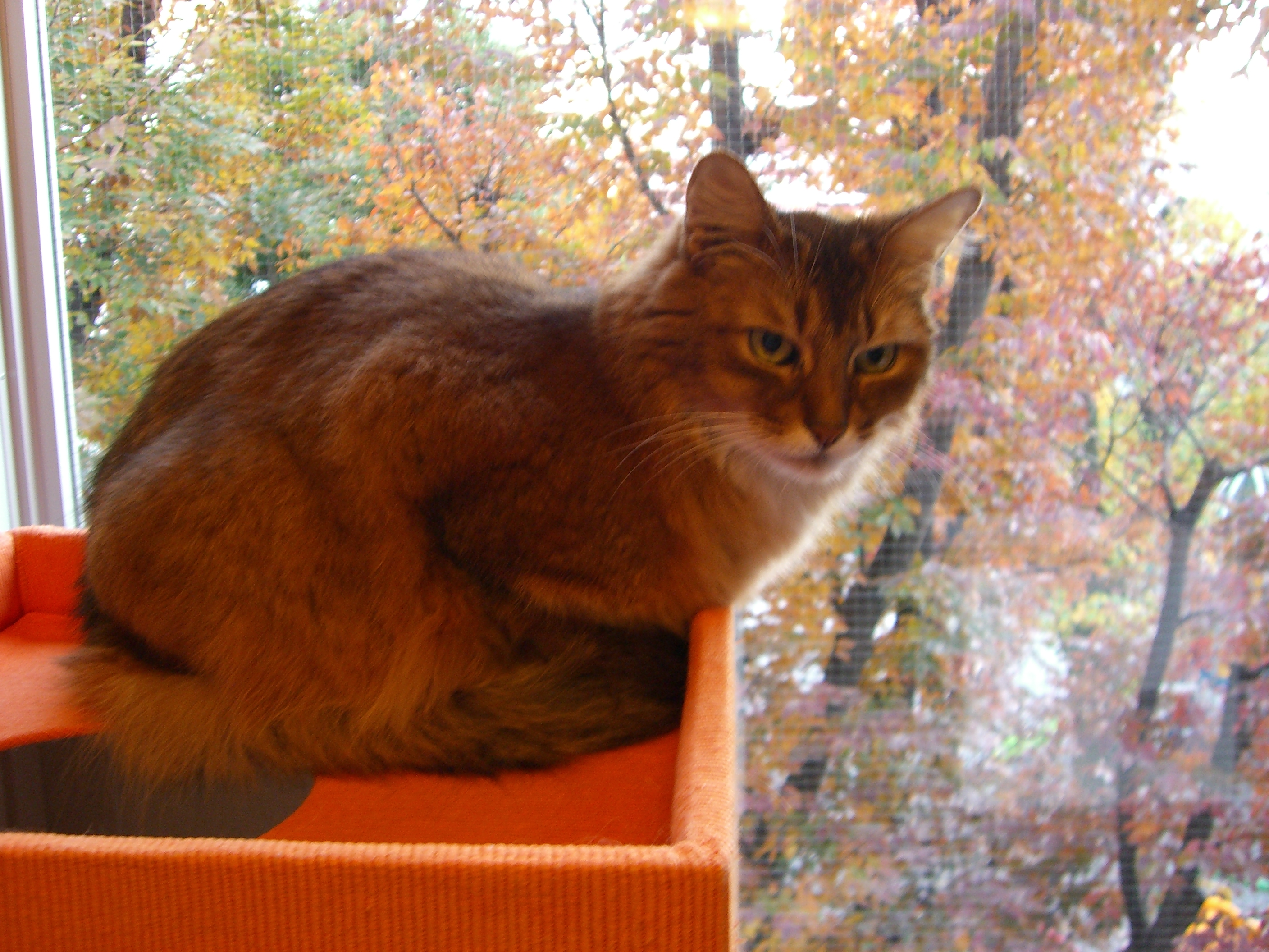 タワーの上から、紅葉を眺めたり、のんびり過ごすマフィンの姿は、秋の陽を浴びて、葉っぱと同じに輝いてみえました。