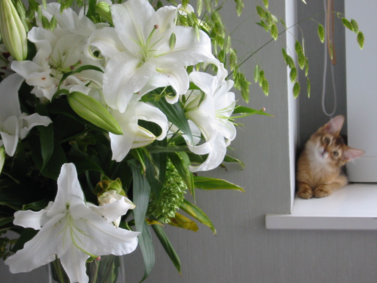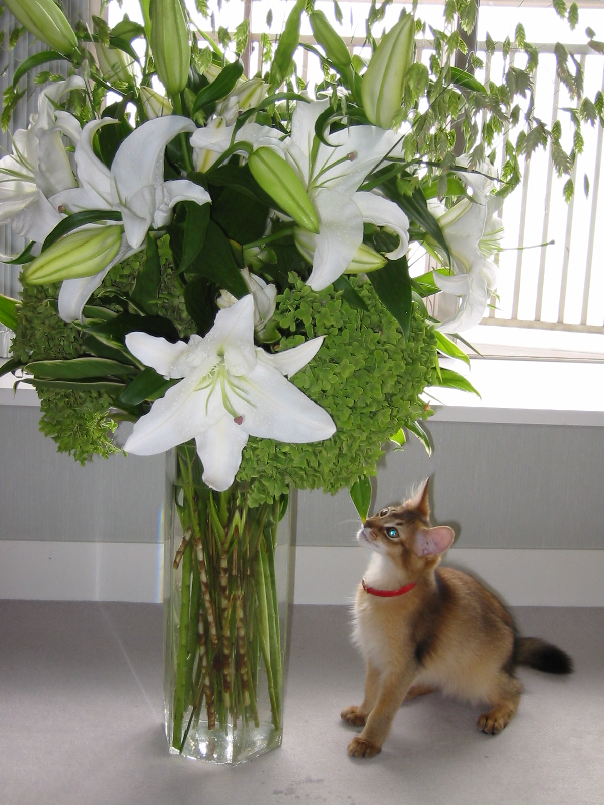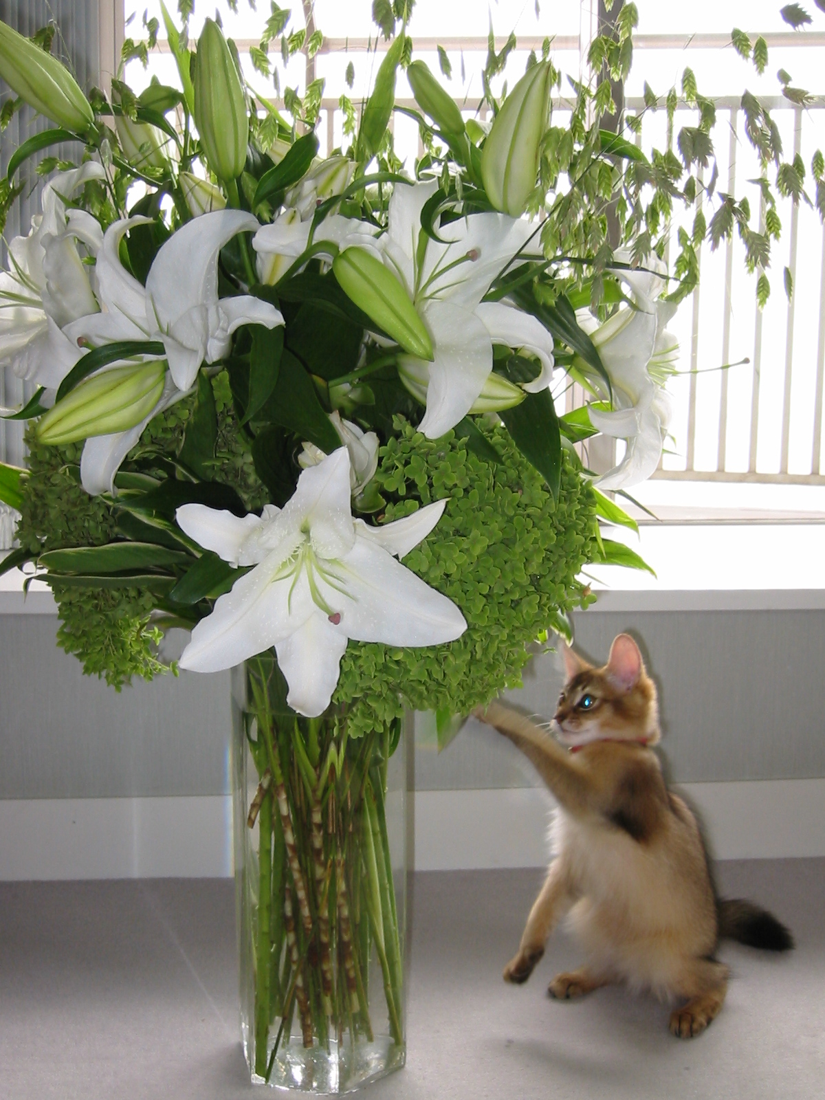 幼いマフィンが、花瓶の花にチョイチョイと手をかけたり、飛びついて口にしたりする、無邪気な姿を見て、怖くなりました。