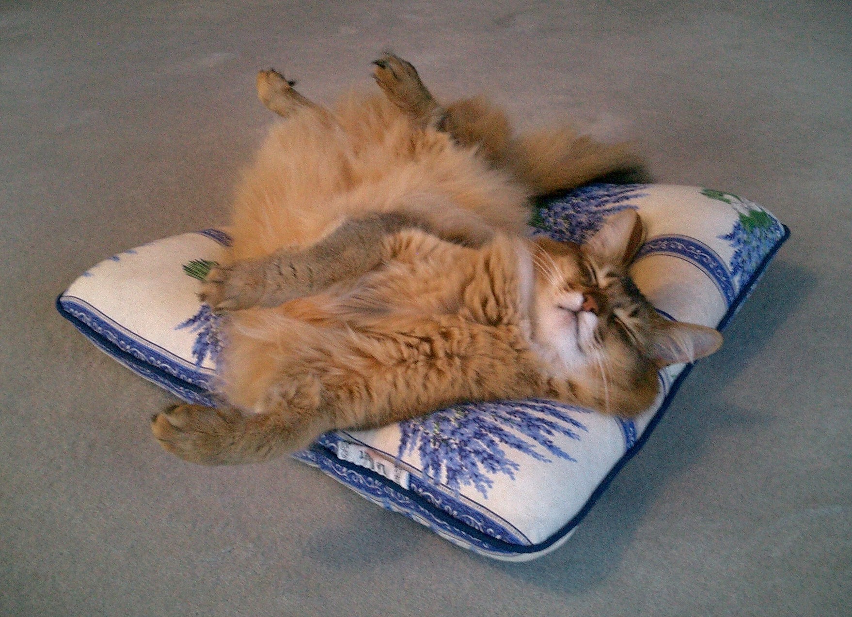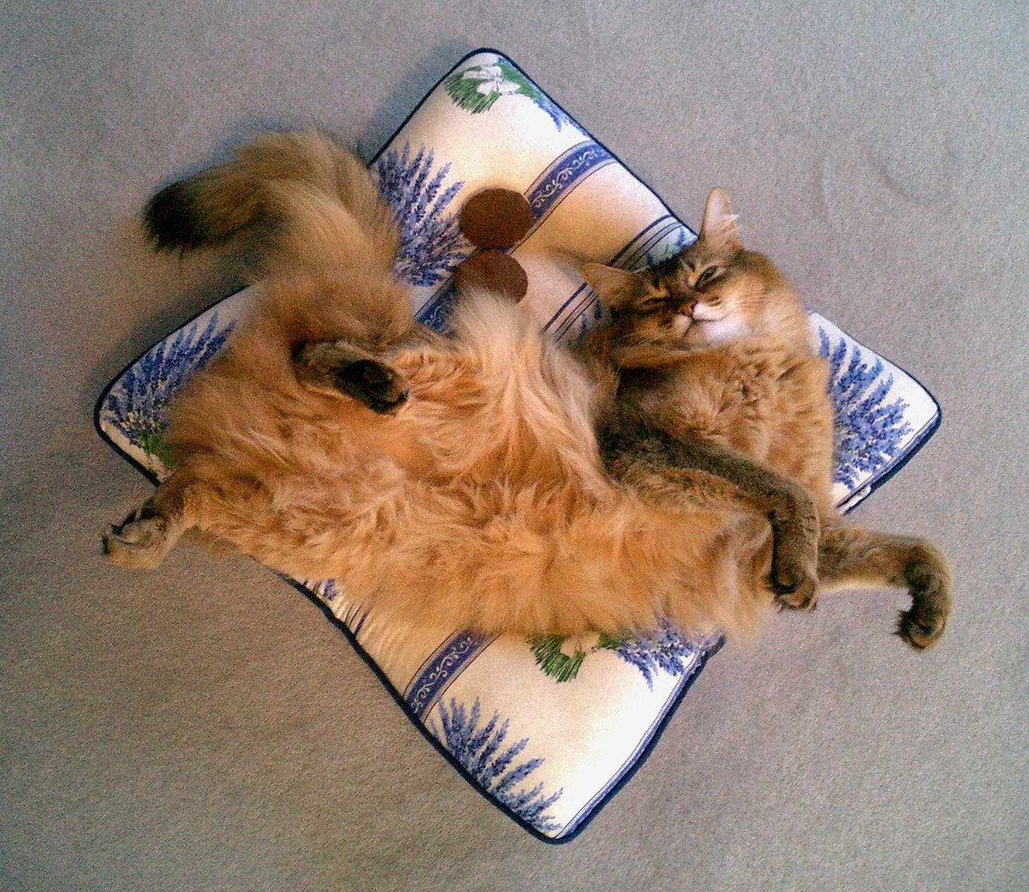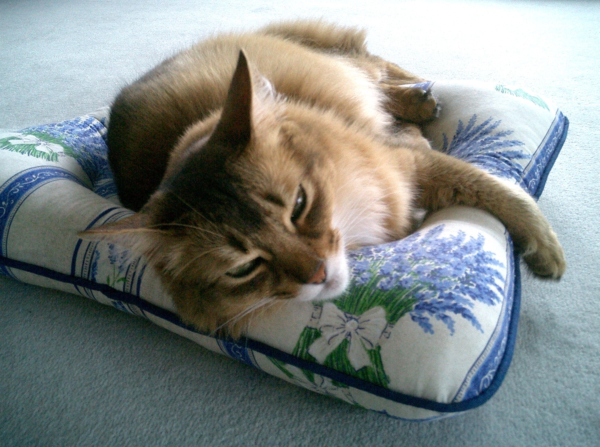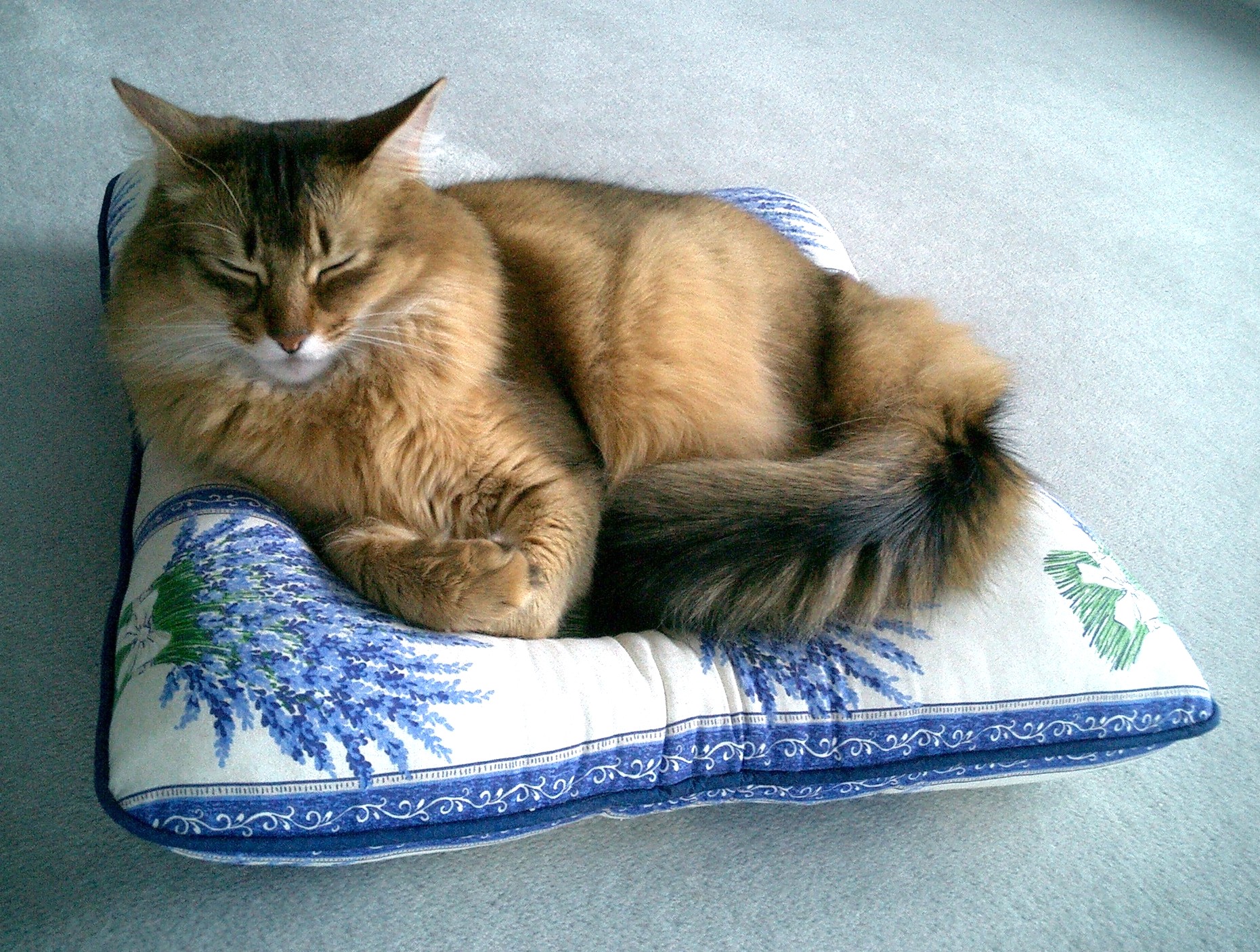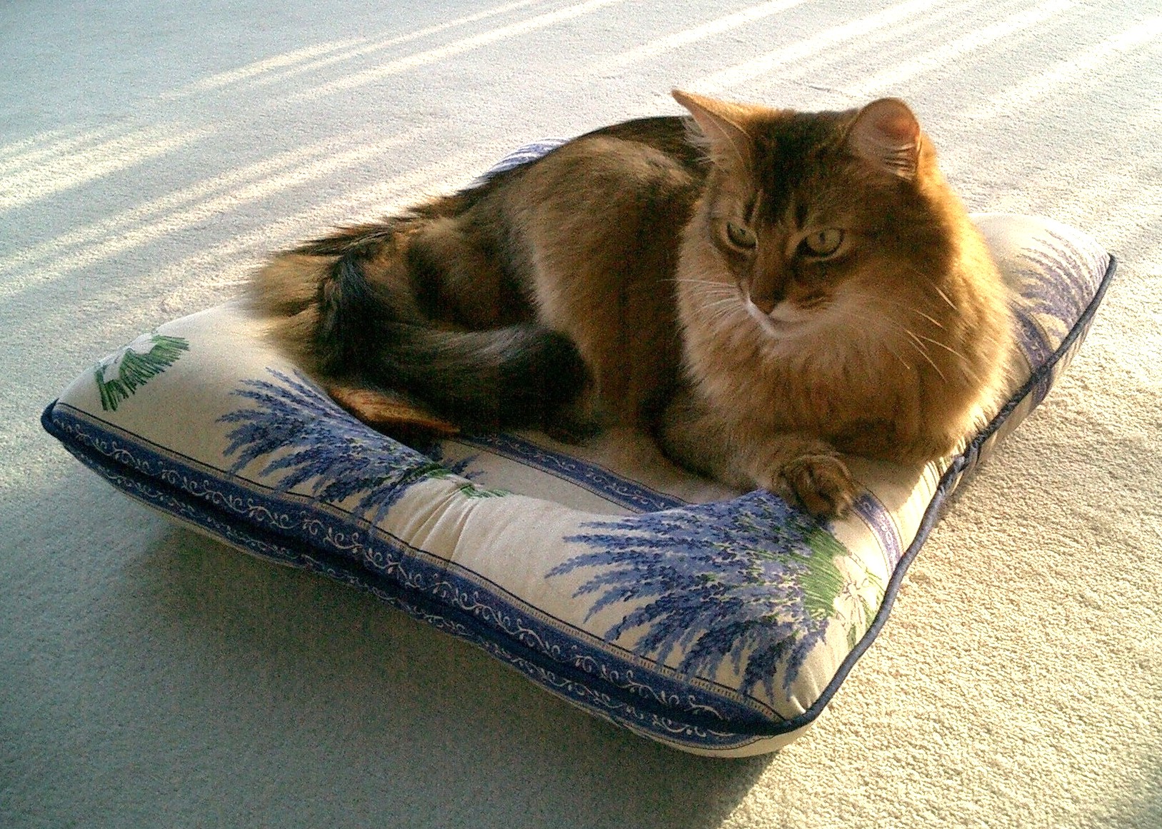 清々しいラベンダー柄のねむねむは、マフィンの毛色ともよく合って、マフィンも私も大喜び。