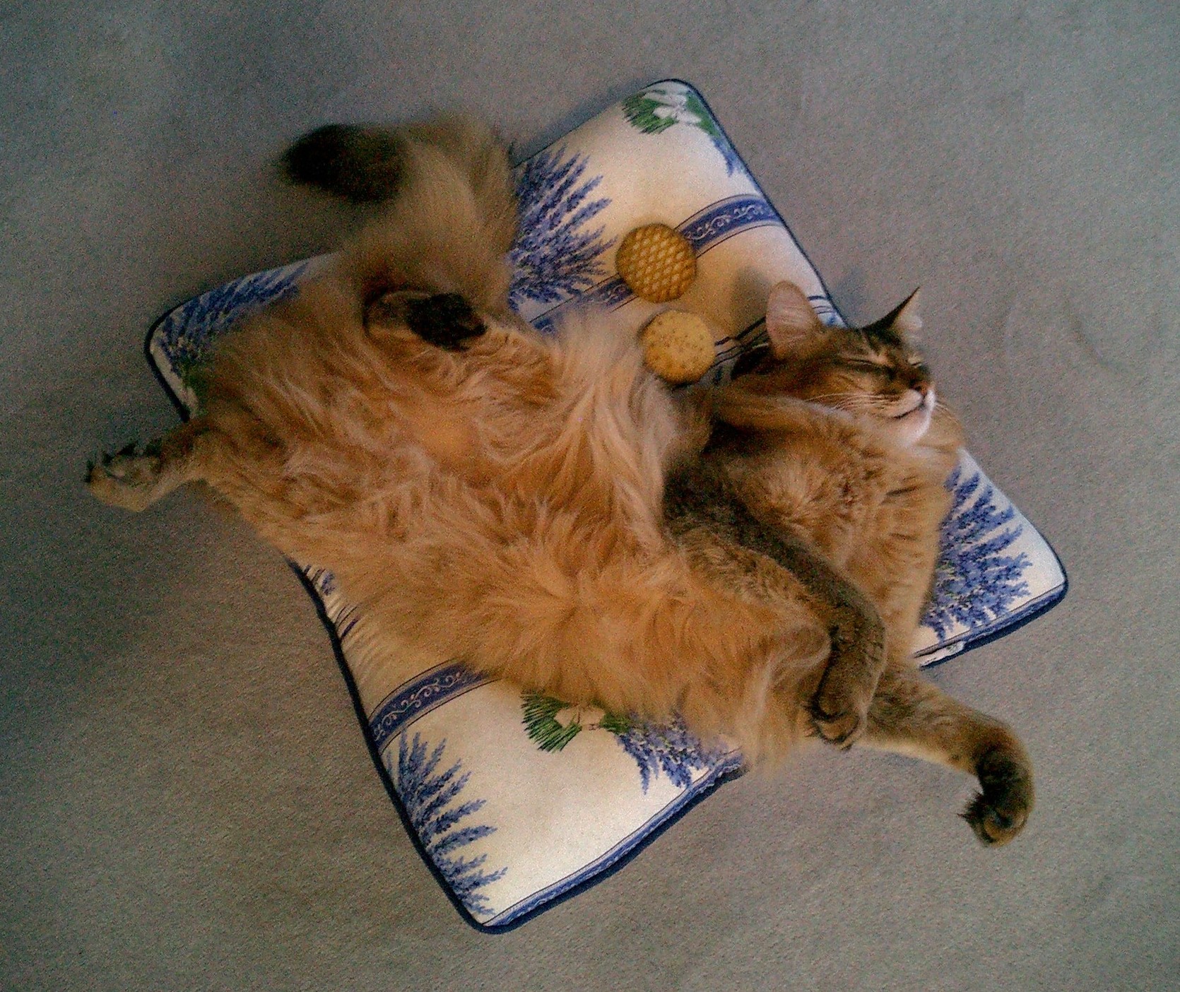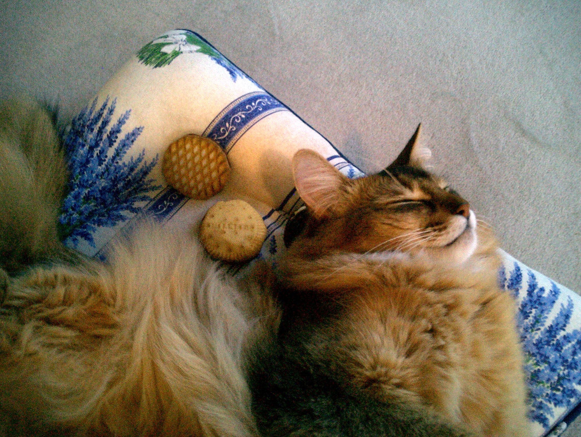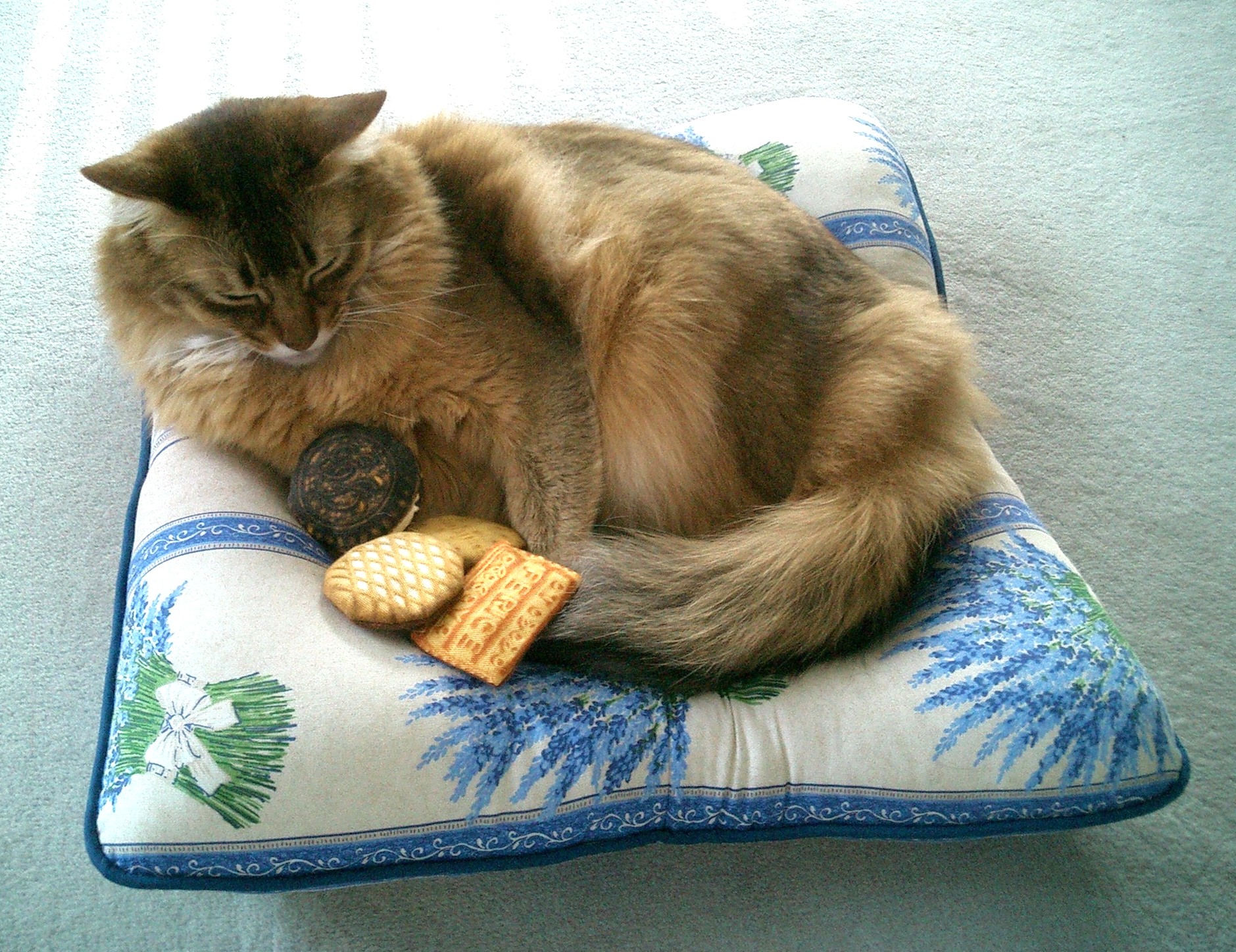 ねむねむに陣取って、またたびクッキーを抱えこんだマフィンは、本当に満足そうでした。