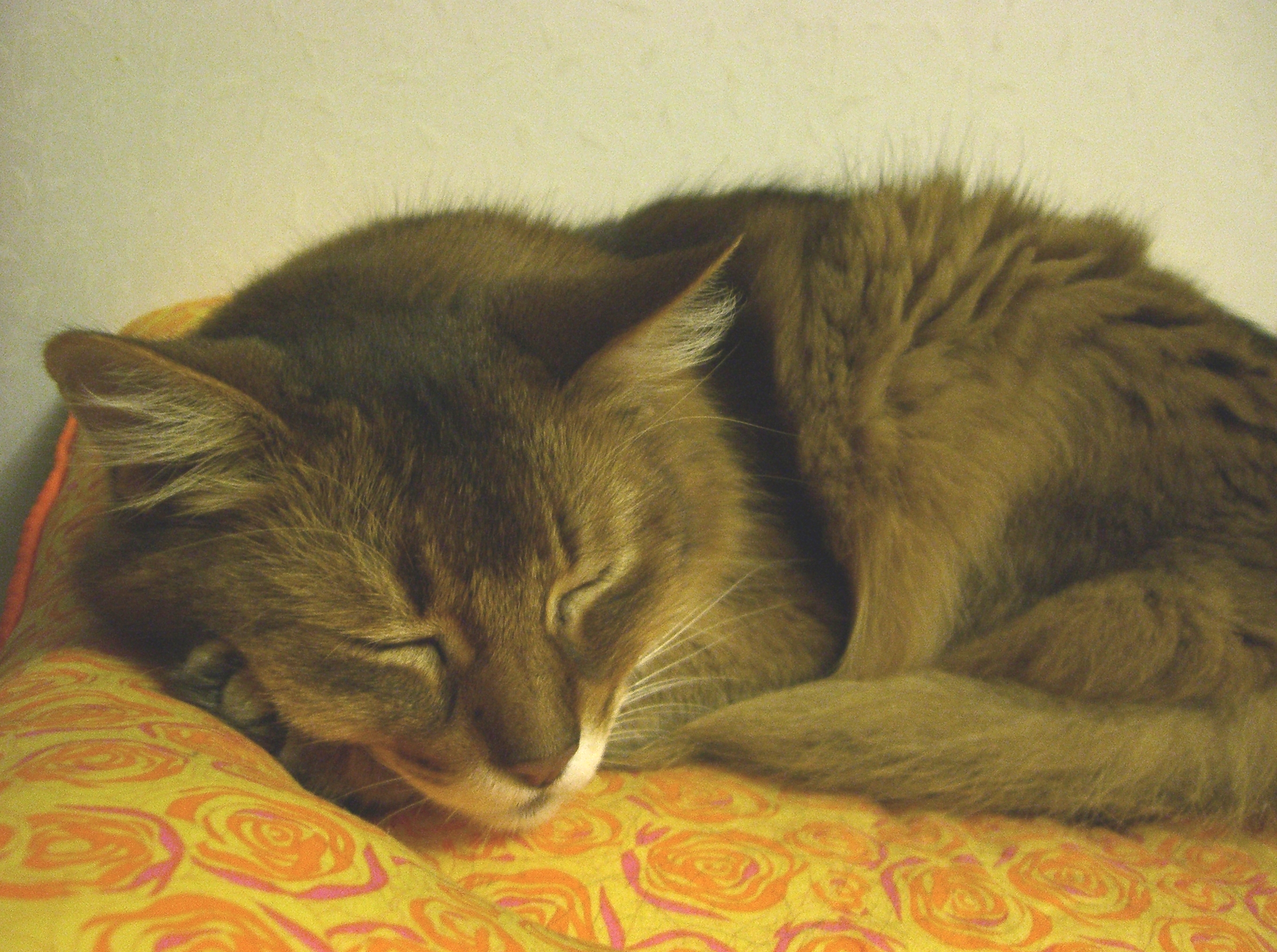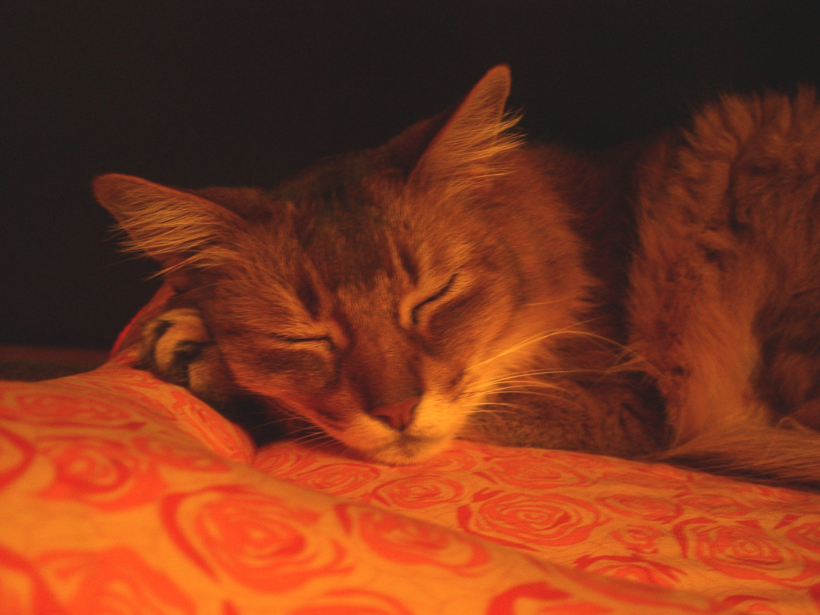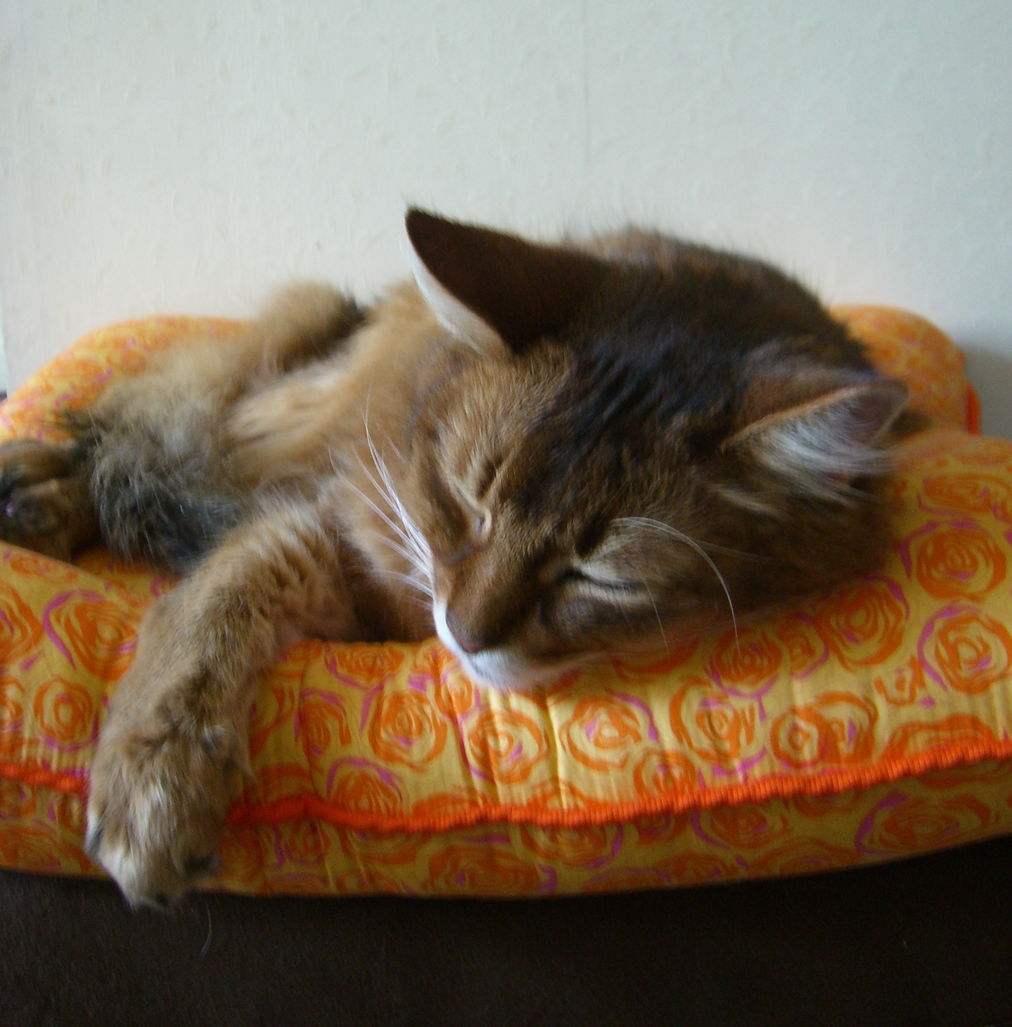 猫の雑貨屋ルシャさんで、オレンジ色の薔薇の花が散りばめられた、ステキな「ねむねむ」が見つかりました。