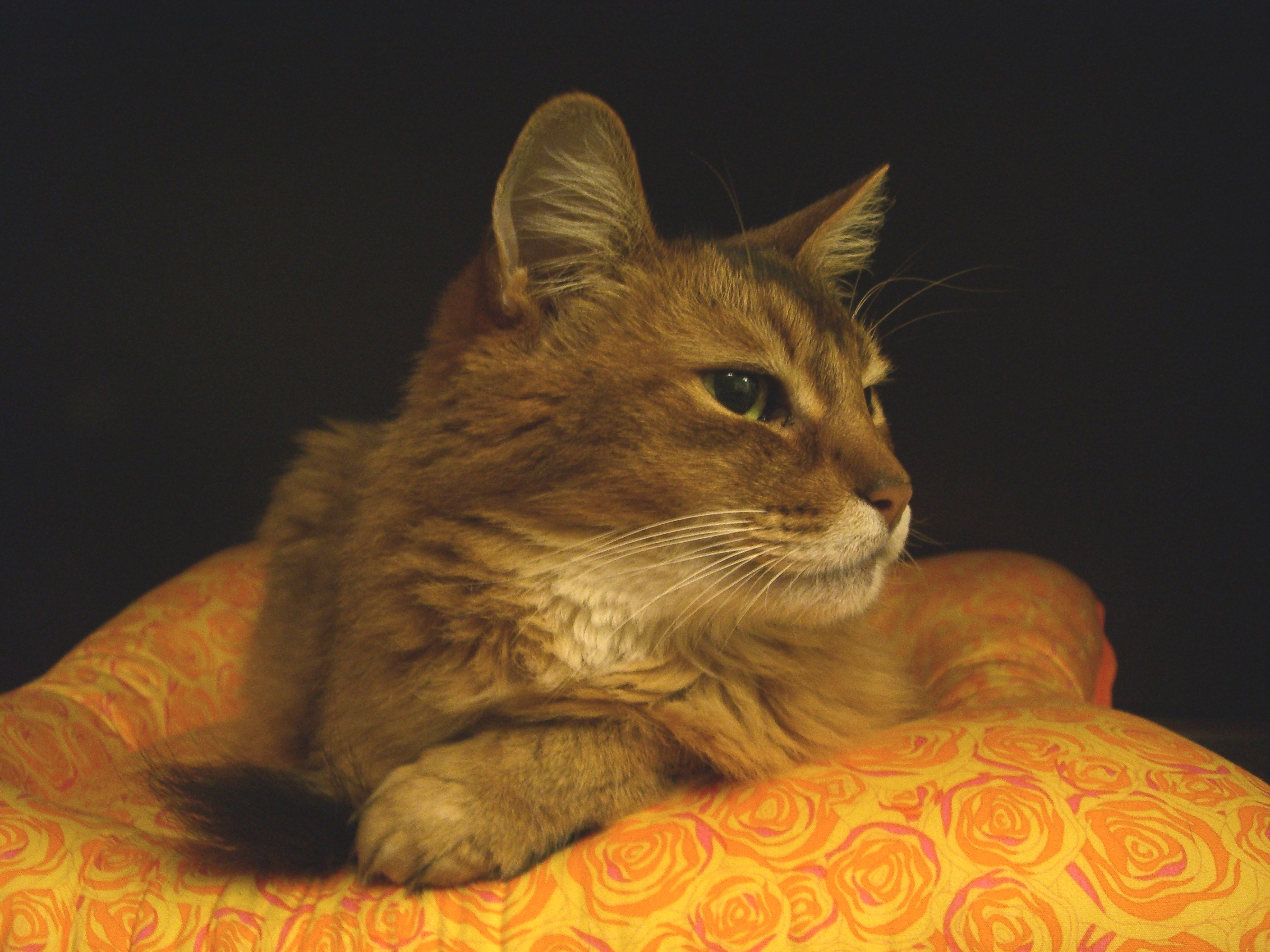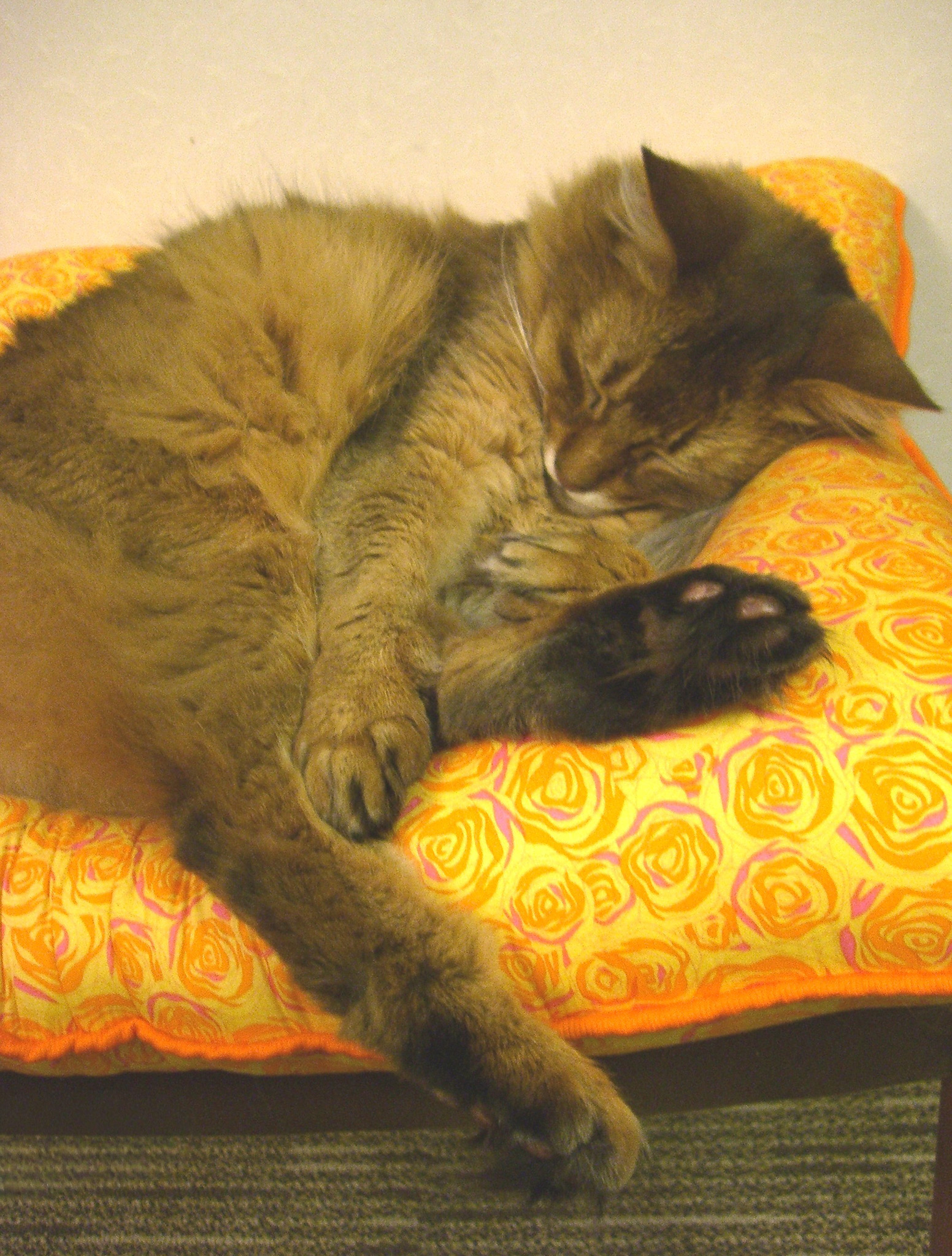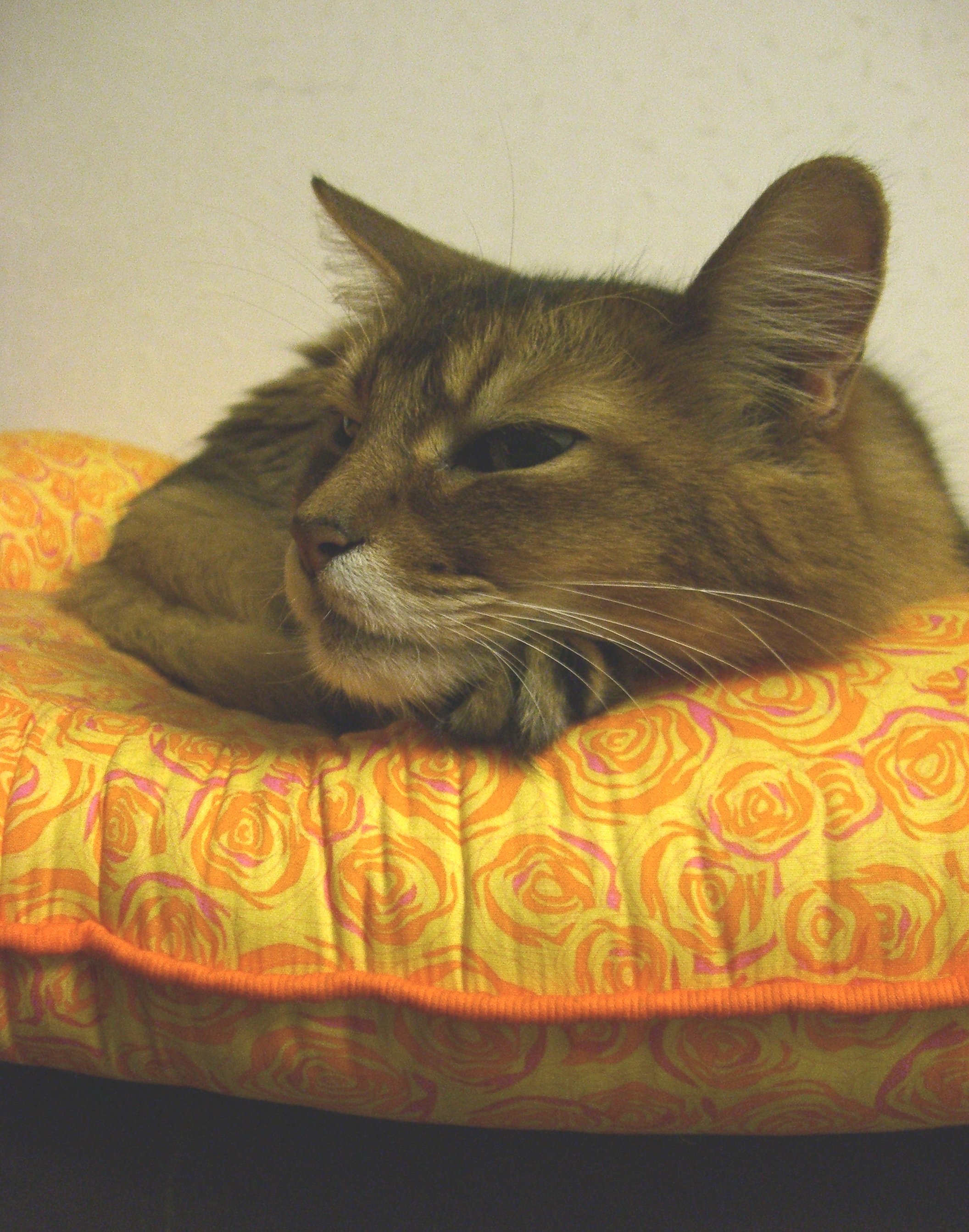 猫の雑貨屋ルシャさんで、オレンジ色の薔薇の花が散りばめられた、ステキな「ねむねむ」が見つかりました。
