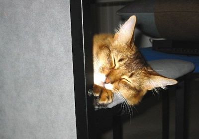 朝までどうしてるのかな、と注意していたら・・・どうやら、ずっと、私の椅子の上で寝ているようなんです。