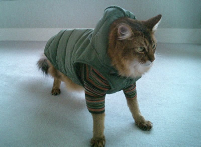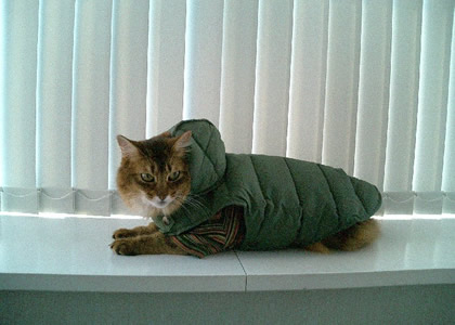 ダウンジャケット着てるネコなんて、