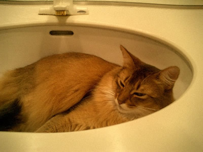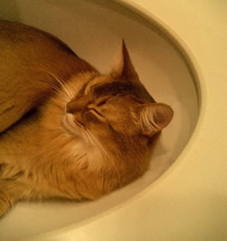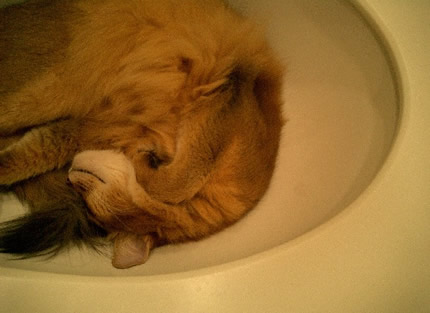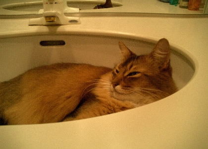 最近では、なんと洗面所の流しにすっぽりと入り込んで、しょっちゅうお昼寝しています。