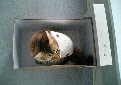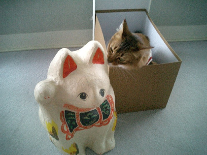招き猫が入っていた大きな箱でかくれんぼしたり・・・。