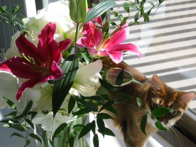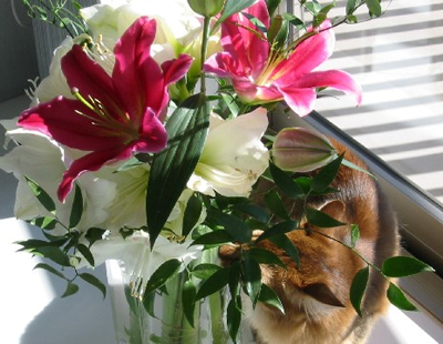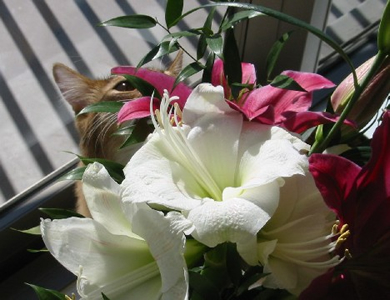 うちに帰ると「ニャ(ご飯ちょうだい)」すら出ず、口をいっぱいに開けて息だけ吐いて、私に食べ物をねだるのには、笑ってしまいました・・・。