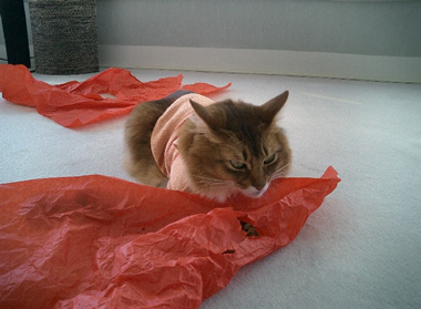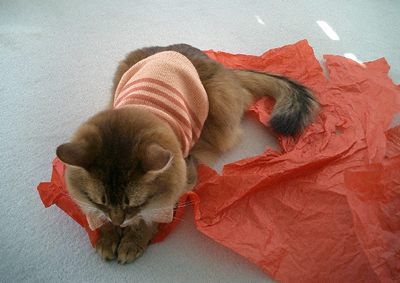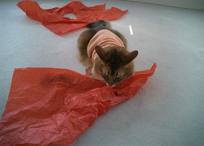 実は、マフィンは、洋服を包むあのシャリシャリした薄紙が大好きなんです。