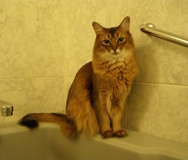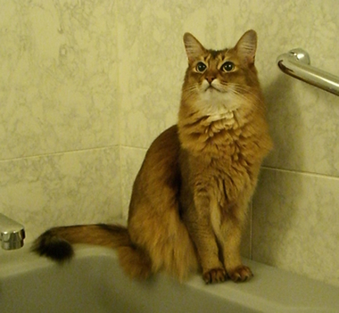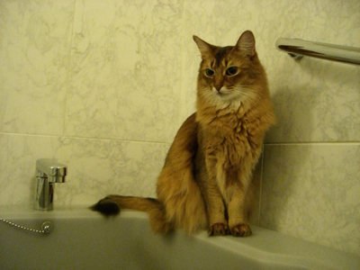 あら、あの子どこに行ったのかしら、と探すと、マフィンは時々お風呂場にいて、ひとり孤独を楽しんでいます。
